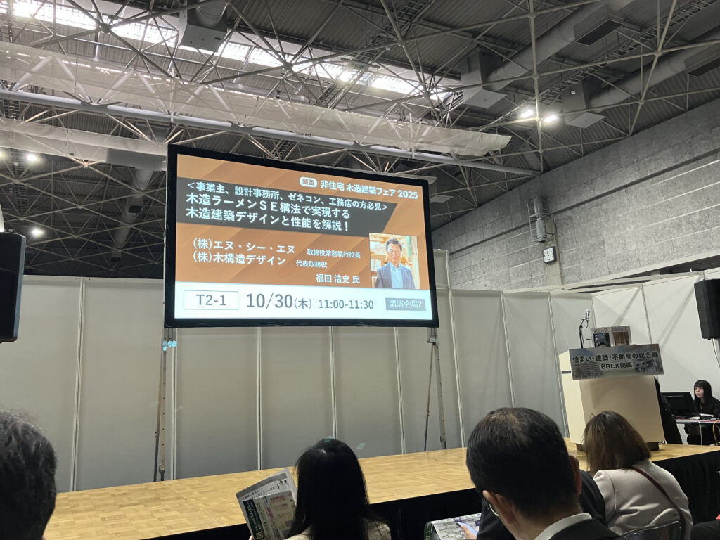10月30日・31日の2日間、インテック大阪で開催された「非住宅 木造建築フェア2025」に、設計担当の橋井が参加しました。