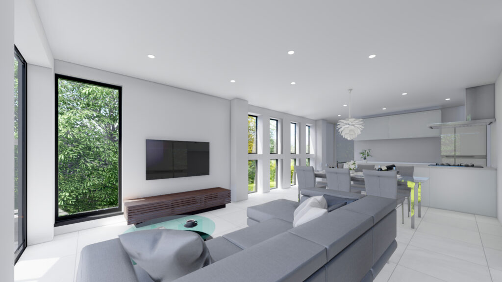 強度と設計の自由度を兼ね備えたSE構法(木造)での計画に変更。