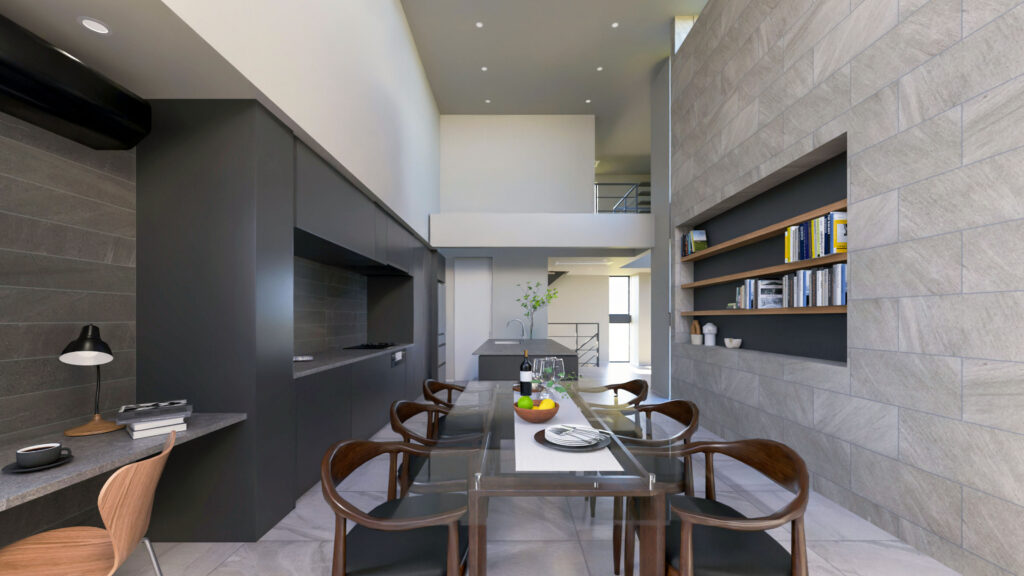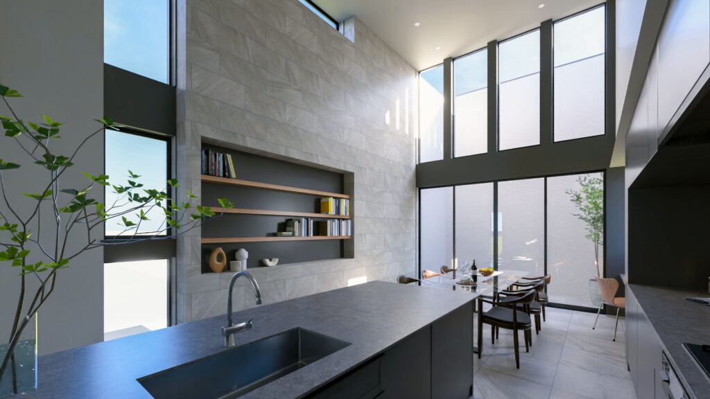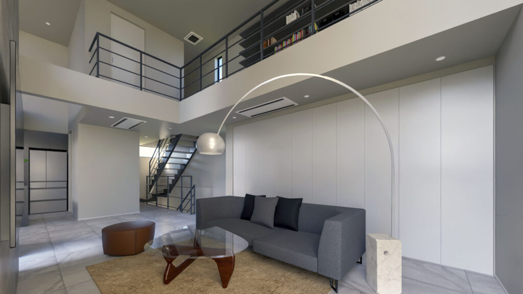 視線が縦へと広がることで、実際の面積以上の開放感を感じていただける住まいとなっています。