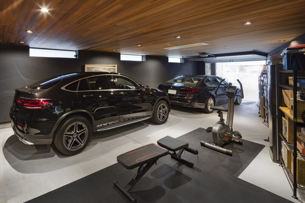 ガレージは、車を停めるだけの場所ではなく、住まいの一部として意識的にデザインされた空間。