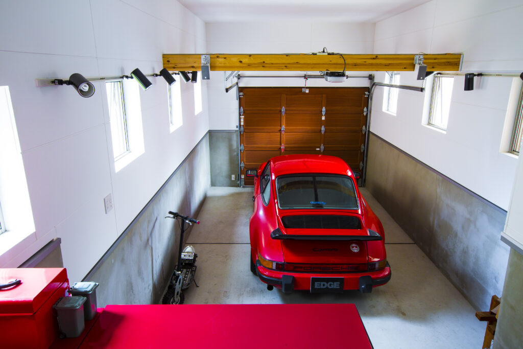 例えば、車のドアを大きく開けられる余裕のある幅を確保し、洗車や整備はもちろん、板金作業まで自宅で完結できる、本格的なメンテナンス環境を実現。