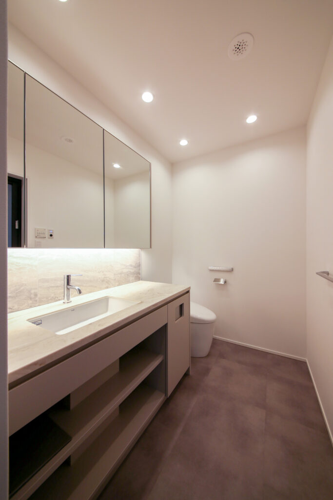 トイレと洗面を一体化し、ホテルライクなデザインに仕上げました。